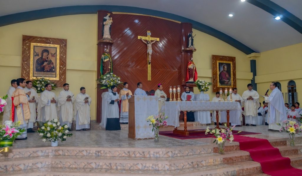 Piura, Perú – 2 de agosto de 2025. En una solemne y emotiva celebración eucarística, la comunidad redentorista y los fieles de la Parroquia San Pedro y San Pablo de los Algarrobos fueron testigos de un momento de gracia: la ordenación diaconal de Ronald Agapito Bolívar Aparicio, misionero redentorista, quien recibió el sagrado orden por la imposición de manos de Monseñor Francisco Castro, obispo auxiliar de Trujillo.